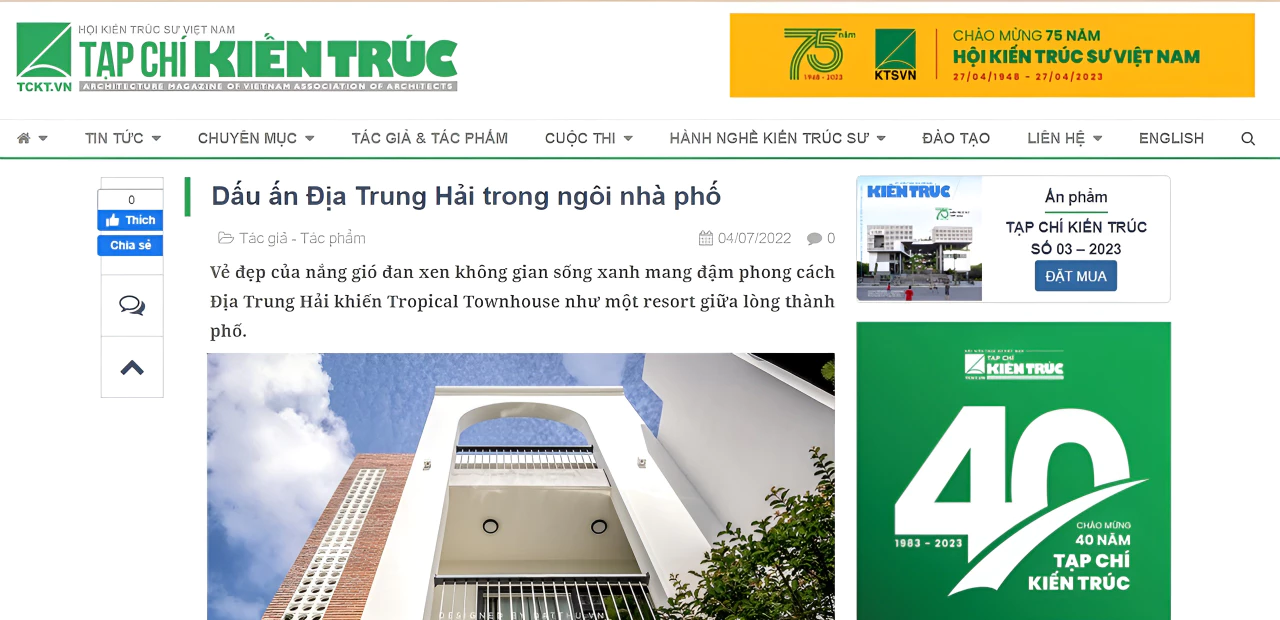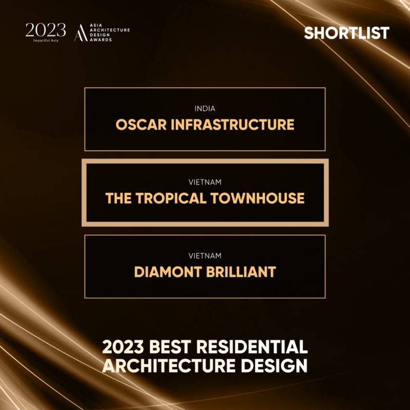 Đất Thủ nhận tin vui khi công trình The Tropical Townhouse đã vượt qua hơn 436 dự án đến từ 12 quốc gia khắp châu Á, để vinh dự xứng tên trong top 100 dự án xuất sắc nhất của Giải thưởng Kiến trúc châu Á 2023.