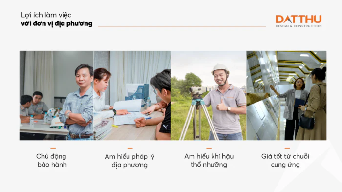 Giải pháp thi công kiến trúc ngoại thất, nội thất và hạng mục phụ theo bản vẽ chủ đầu tư cung cấp, kết hợp tư vấn tối ưu thiết kế và kiểm tra pháp lý.